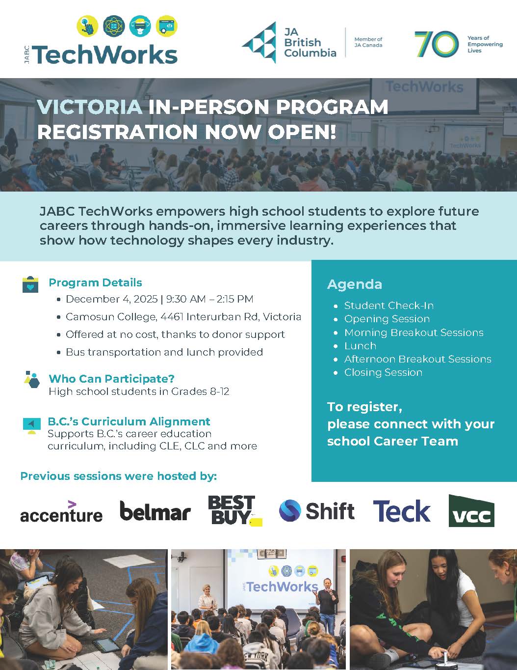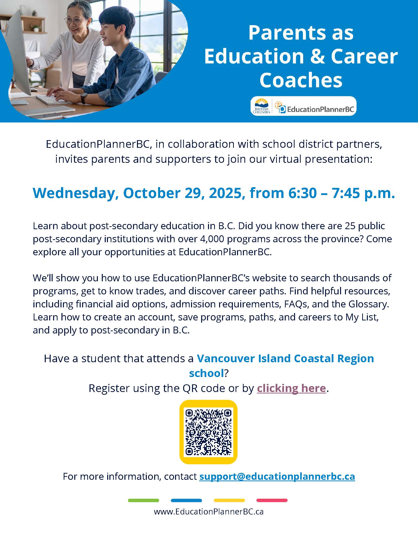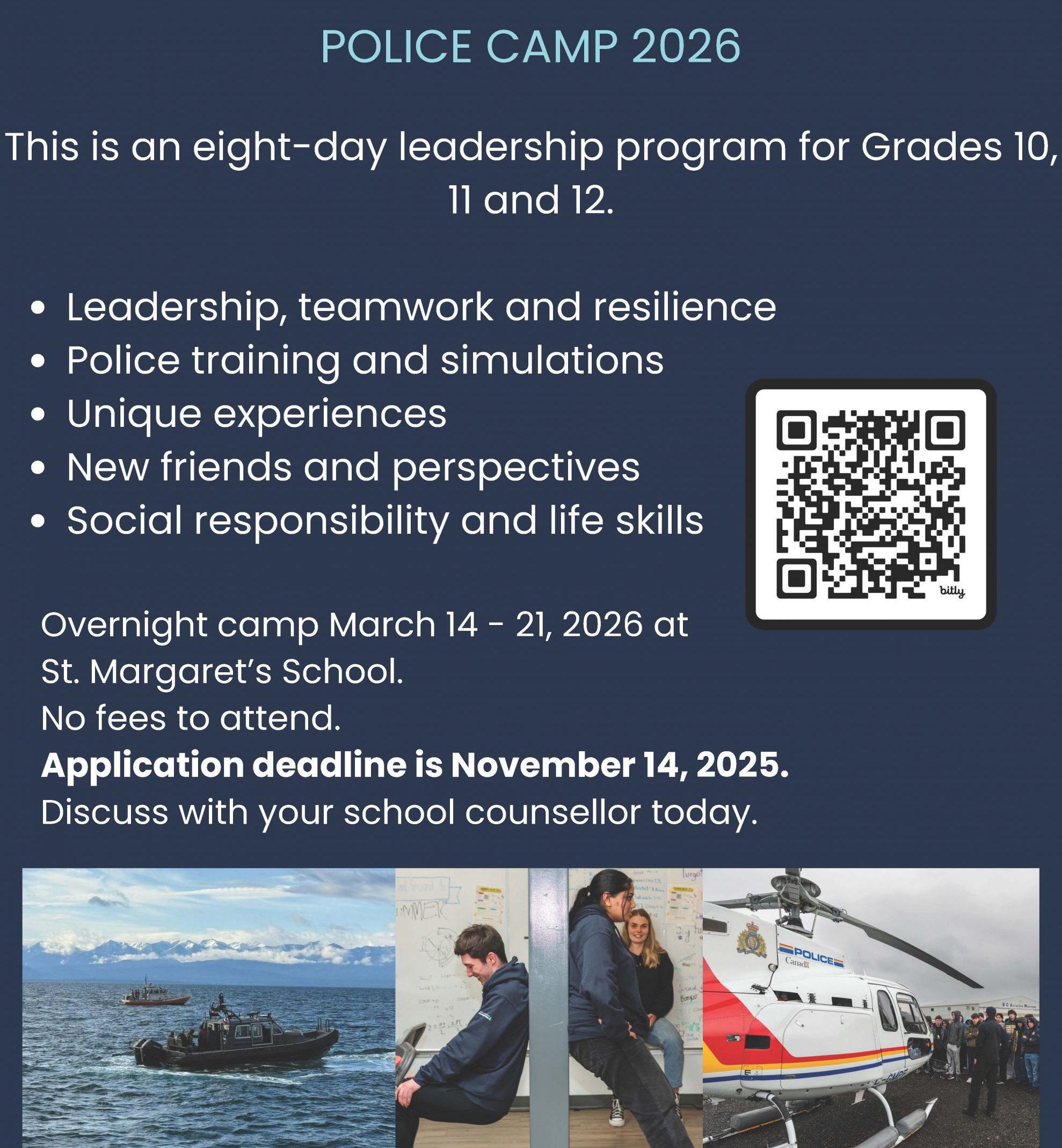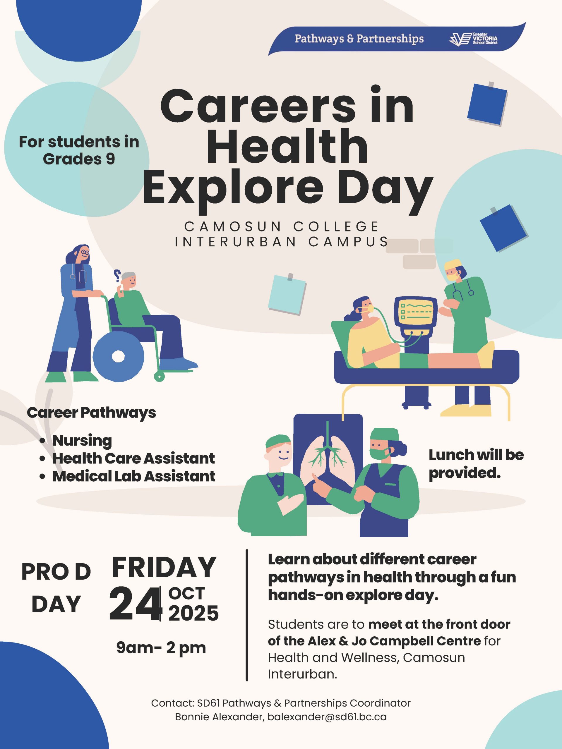 Careers In Health Explore Day – Friday, Oct. 24 (Pro D) – 9 am – 2 pm.  For GRADE 9s. Short applications in Career Centre. DEADLINE: Oct 14